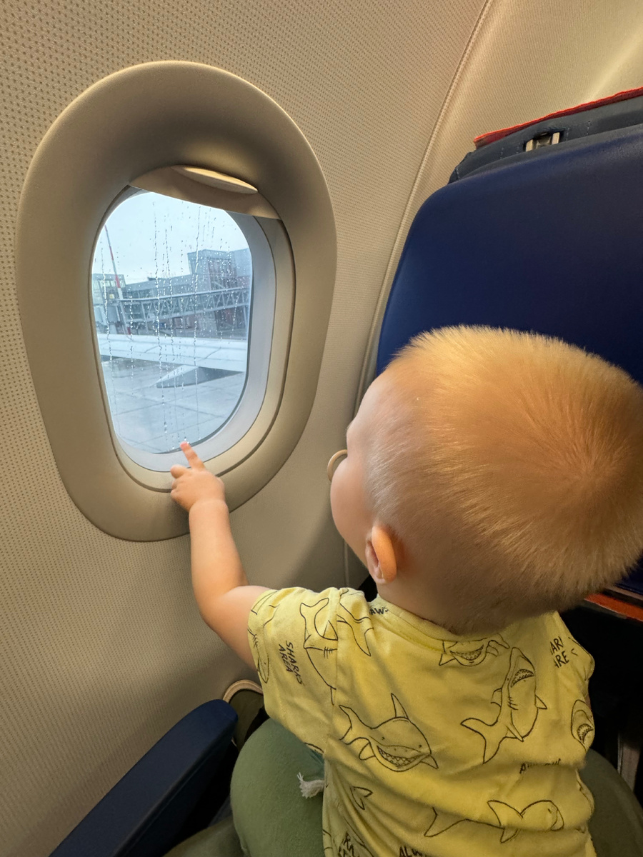 Мы с сыном впервые полетели вдвоем, когда ему было 4 месяца. Сейчас ему 1 год и 9 месяцев и можно его смело назвать путешественником, за это время он летал 5 раз. Когда он был совсем маленький у нас не возникало никаких сложностей. Да и в целом все наши перелеты я могла назвать успешными, не считая последнего. Раньше мы всегда летали прямым рейсом с Екатеринбурга, время полета примерно 1 час 15 минут, за это время малыш не успевал сильно устать и хорошо себя чувствовал. В крайний раз нам не повезло, 3 ближайших рейса на наш самолет были выкуплены, прямой рейс только через 3 недели…. Выбора у нас особо не было и мы решили лететь с пересадкой. Моя главная ошибка, что я не подготовилась морально, не учла все возможные факторы. У нас был вечерний рейс из Екатеринбурга и ночной из Москвы, я думала, что так будет легче, он не будет хулиганить, а будет спать, ошиблась. 1 перелет прошел очень хорошо, мы играли, кушали, смотрели на облака, Макар хорошо себя чувствовал по прилету в Москву.