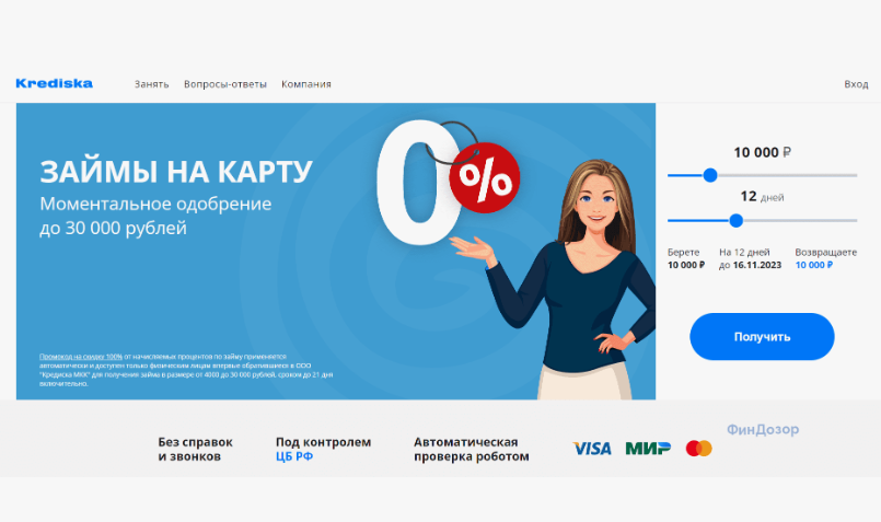 Компания "Krediska" предлагает своим клиентам удобные условия для получения займа