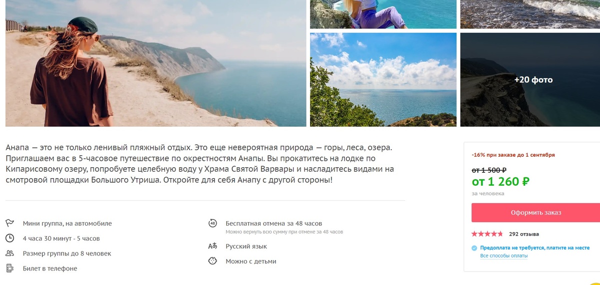 Я зашла на сайт Спутника и мне тут же предложили экскурсию на Кипарисовое озеро по цене 1260 руб.! Наполнение тура тоже самое один в один с тем, что нам предлагали на пляже за 1800 руб.