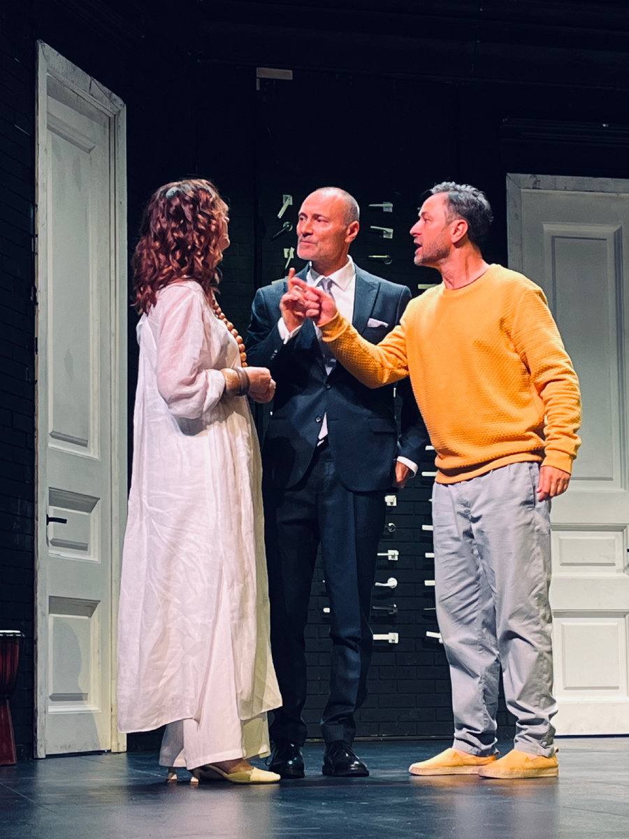 Многие, возможно, видели постановку по пьесе Ясмины Реза «Разговоры после погребения» о старых обидах в одной семье, но у французской писательницы есть еще одна интересная работа, в которой уже речь идет о взаимоотношениях между двумя разными семьями «Бог резни». По этой книге Романом Полански был снят фильм в 2011 году при участии Джоди Фостер и Кейт Уинслет под названием «Резня», а российский режиссер Олег Тополянский недавно поставил в «LA’ Театре» спектакль «Хомяк на мостовой». Текст пьесы адаптировали под наш менталитет, чтоб шутки стали близки и понятны российскому зрителю. В итоге получилась замечательная, поучительная, веселая комедия. Название так же заменили осознанно. Когда слышишь «резня» сразу появляется ассоциация с боевиком, поэтому логичнее для легкой комедии выбрать более звучное название. Хомяк действительно присутствует в постановке, но скорее, как символ. С рассказа о трагической судьбе грызуна, как раз и начинают развиваться события при встрече двух семейных па