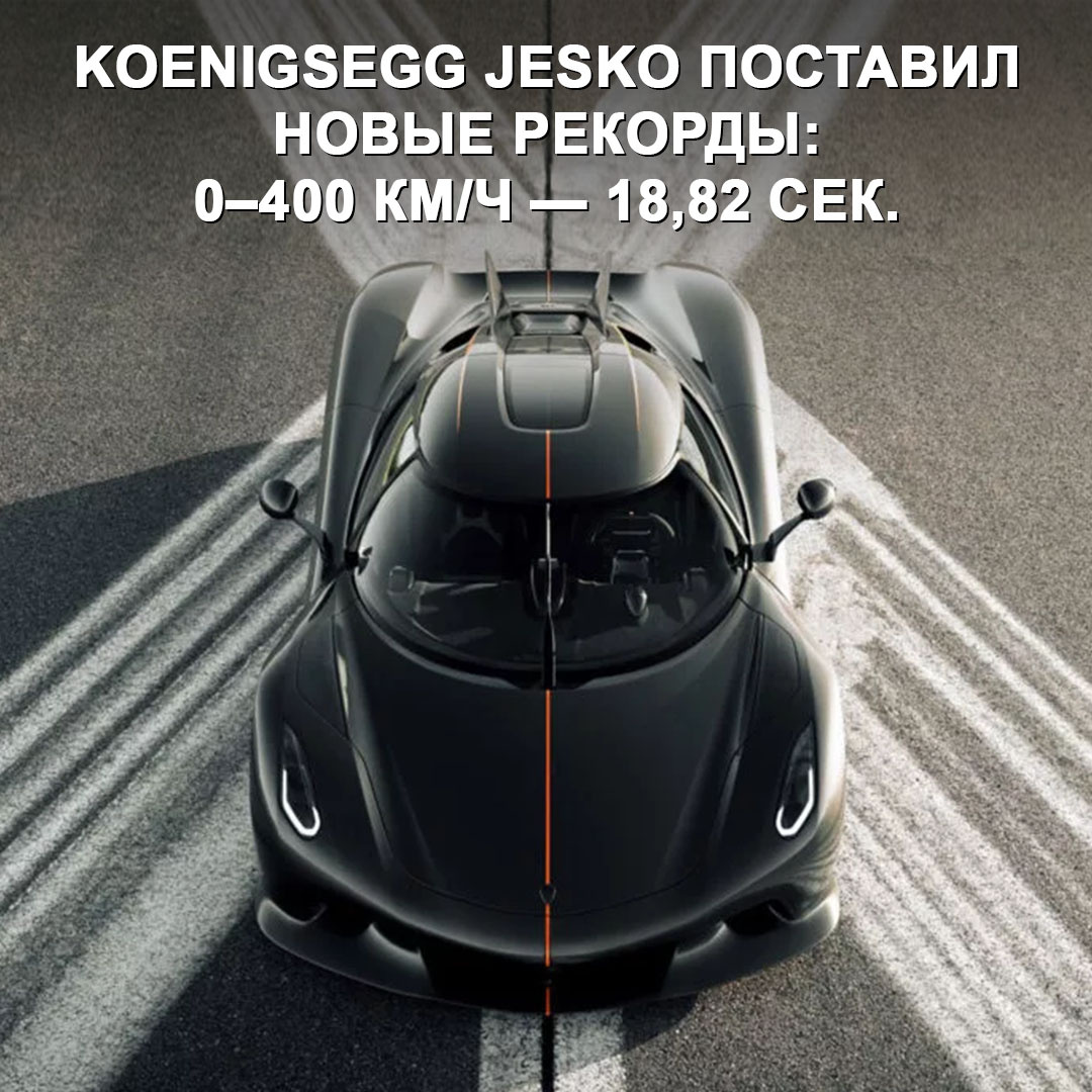 До 400 км/ч он разогнался быстрее 19 сек. 😯 О машине: → 5,1-литровый V8 с двойным турбонаддувом на 1 600 л.с. и 1 500 Нм (при использовании биоэтанола E85). → 9-ступенчатый робот с многодисковыми сцеплениями, который способен переключаться за 20–30 миллисекунд. → Алюминиевый монокок и карбоновый кузов. → Максималка — более 480 км/ч. → Стоимость — более $3 000 000. → Общий тираж модели — 125 экземпляров. Рекордные заезды прошли на аэродроме в Швеции, за рулём был водитель-испытатель компании Маркус Лунд. Результаты: → Разгон до 400 км/ч — 18,82 сек. → Разгон до 250 миль/ч (402,3 км/ч) — 19,2 сек. → Разгон и остановка 0–400-0 км/ч — 27,83 сек. → Разгон и остановка 0–250-0 миль/ч — 28,27 сек. Автомобиль был в стоке на стандартных покрышках Michelin Pilot Sport Cup 2 R, топливо — биоэтанол E85. Единственные изменения — каркас безопасности и водительское сиденье от Koenigsegg One:1. В ближайшем будущем Jesko попробует поставить рекорд скорости для серийного автомобиля 🔥 Решились бы разогн