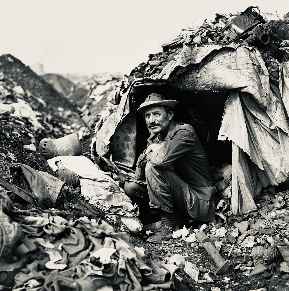 Но, пожалуй, самым причудливым обстоятельством моей жизни в эти недели стало то общество, которое я встретил на свалке и с которым делил свое кошмарное существование. Свалка стала обитаемой с тех пор, как бордели и трущобы остались без полицейского контроля из-за шока и беспорядков, вызванных войной. Официально этот гектар арендовал польский садовник, который планировал выращивать овощи для Красного Креста. Но отходы городу надо было куда-то девать, а старая свалка была отрезана от Луцка линией фронта, да и в любом случае сейчас крайне опасно перемещаться по дорогам даже с телегами мусора, вот и пригодился арендованный гектар для мусора. Несмотря на весь ужас жизни в таких нечеловеческих условиях , это место стало для меня надежным убежищем, так как гордость отцов города не позволяла им допустить даже мысль о том, что кто-то там может жить. И это спасало от полицейских облав и иных неприятностей. Итак, кто же нашел пристанище в столь жутком, но спокойном месте?