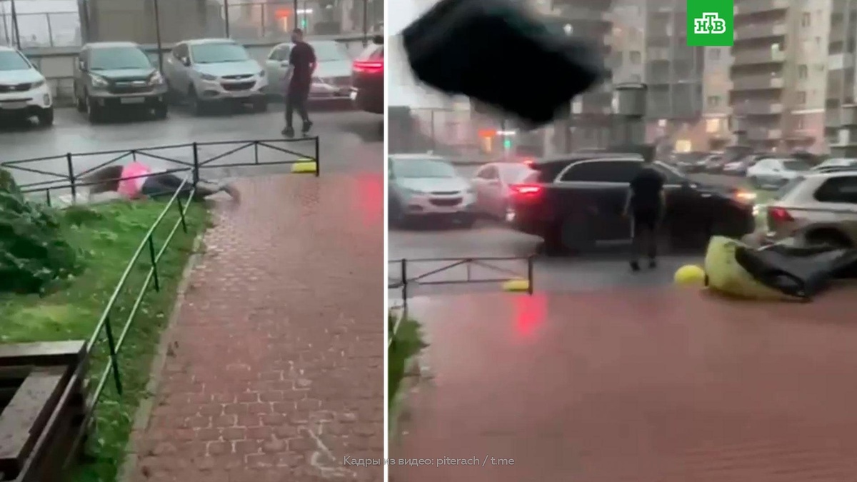 [ Смотреть видео на сайте НТВ ] В Санкт-Петербурге во время вчерашнего урагана чемодан травмировал девушку на улице. Инцидент попал на видео. На кадрах видно, как чемодан прилетает в девушку, от чего он падает на землю. В соцсетях пишут, что очевидцы вызвали ей скорую помощь. Напомним, накануне на Санкт-Петербург обрушился шторм с ливнем и сильным ветром до 31 м/с. Во время урагана погибли два человека, еще шестеро пострадали. [ Смотреть видео на сайте НТВ ]