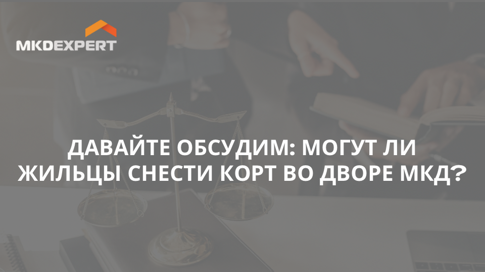 Во дворе МКД есть корт, но он не работает и жильцы не могут им пользоваться. В итоге на площадке копится мусор, поэтому собственники квартир хотят снести ее и благоустроить земельный участок. Читатель спрашивает, есть ли у них такое право — давайте обсудим вопрос в комментариях к статье https://mkdexpert.com/publikatsii/davayte-obsudim-mogut-li-zhiltsy-snesti-kort-vo-dvore-mkd/