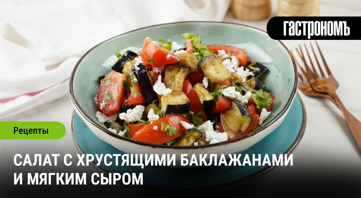 Хрустящий жареный баклажан, сочные помидоры и нежный сливочный сыр — этот салат удивляет разнообразием текстур. А тайский соус чили добавляет пикантности и колорита. Пошаговый рецепт: https://www.gastronom.ru/recipe/44009/salat-s-hrustyashchimi-baklazhanami-i-myagkim-syrom ИНГРЕДИЕНТЫ НА 4 ПОРЦИИ: