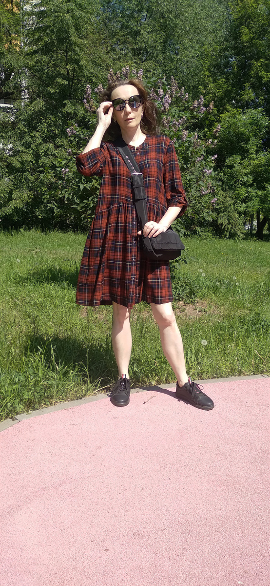 Здравствуйте. Поскольку фоток на обзор сегодня нет, покажу часть своих любимых нарядов, что иногда мелькают на заднем фоне. Платье из вискозы купила этой весной за 100 рублей. Польстилась больше на эту клетку, чем на модель. Розовое платье из хлопка ношу уже пару лет и оно мне не надоедает. Тот редкий случай, когда отрезное по талии платье подходит на мой рост. 150 руб. Платье из вискозы, тоже купила этой весной. Не сразу поняла, что в нем мне не нравится, но муж расставил все точки над i, спросив, что я пойду в этой рубашке. Есть в нем нечто рубашечное, но на жару очень хорошее, с одной стороны защищает от солнца, с другой почти не ощущается на себе, очень тонкий и лёгкий материал. Полосатик этот жилет из тонкого хлопка, но ношу как майку. Блузка тоже из хлопка, но плотного, ношу как легкий жакет. И только джинсы ношу как положено, как джинсы)). За жилет платила рублей 50, а за блузка около 200. Смотрите так же: Все по 100 рублей - от джинсовок и до блузки с вышивкой. Комбинезон, дж