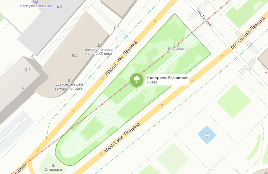 В 2004 году в скверике на пересечении проспекта Ленина с улицей Ленина напротив краеведческого музея установлен памятник Маргарите Агашиной. Сам сквер также носит имя поэтессы. Правда я не смог найти год, в котором скверу присвоили нынешнее название. Но думаю, что вряд ли это случилось при жизни Агашиной.