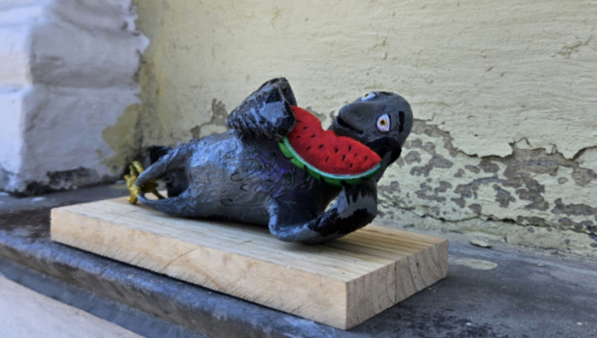 Новый птичий арт-объект от тверской художницы Екатерины Крутиловой (Катя ХБ) разместился на карнизе дома на бульваре Радищева. На этот раз уже известный тверичанам голубь Семён лакомится арбузом: "В жару Семён грызет арбуз, Лежит в теньке и пузо чешет". "Птичий" проект о жизни городского голубя Екатерина стала воплощать в этом году. Так, ранней весной появился голубь Борис со штангой, как бы намекая, что пора приводить себя в форму перед купальным сезоном. Затем в конце мая на карниз водрузили голубя Гену с кулёчком семечек. Модели птиц сделаны из папье-маше.