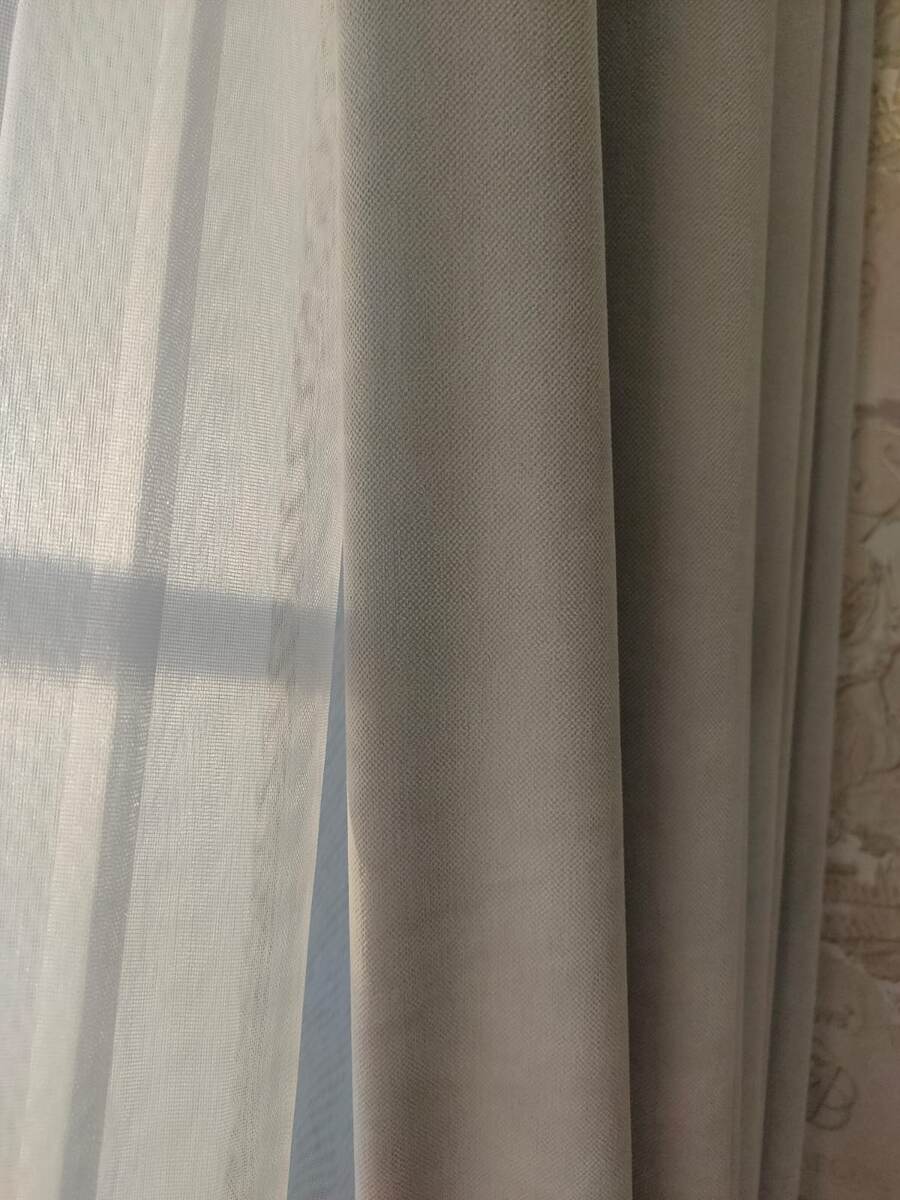 Иногда клиенты обращаются, чтобы заказать шторы для окон в мансарде. И тогда пошив самых обычных штор усложняется. Для портьер была выбрана очень добротная и внушительная по толщине ворсовая ткань серого цвета с интересной мелкой выделкой. Тюль также светло-серый, он приближается по оттенку к тону портьер и обе ткани смотрятся дружно и гармонично. Если смотреть вживую, даже сразу и не понятно, что тюль серый. Но таким образом достигается гармония. В этой комнате много желтоватого тона в обоях, но и одновременно есть серые вкрапления. Если шторы сделать в тон основному тону обоев, комната стала бы совсем жёлтой. В случае светло-серого решения, комната визуально становится более спокойной. В данном случае мне показалось это цветовое решение более оправданным. Чем сложнее этот пример, чем остальные? Нужно правильно снять замеры высоты с ключевых точек карниза. А в случае на фото ещё и установить сам карниз. Пожеланием клиентов было поднять основную трубу карниза повыше (по которой перем