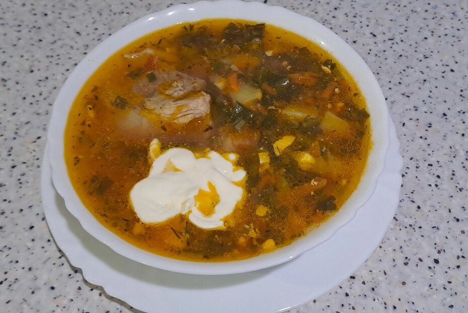 Соль 2½ столовые ложки ИНСТРУКЦИЯ ПРИГОТОВЛЕНИЯ 2 ЧАСА РАСПЕЧАТАТЬ 1.Подготовить все необходимые ингредиенты. 2.Свиные ребра хорошо вымыть под проточной водой и нарезать порционными кусками. 3.Переложить нарезанные свиные ребра в кастрюлю, залить водой, добавить 1 столовую ложку соли, довести до кипения, периодически снимая всю пену. Добавить лавровый лист. Убавить огонь и варить на медленном огне примерно 40 минут. 4.Очистить лук, картофель и морковь. 5.Картофель нарезать небольшими кубиками, залить водой и отставить в сторону. 6.Очищенный лук мелко нарезать. 7.Морковь натереть на крупной терке. 8.Выложить морковь и лук на сковороду, добавить 150 мл подсолнечн