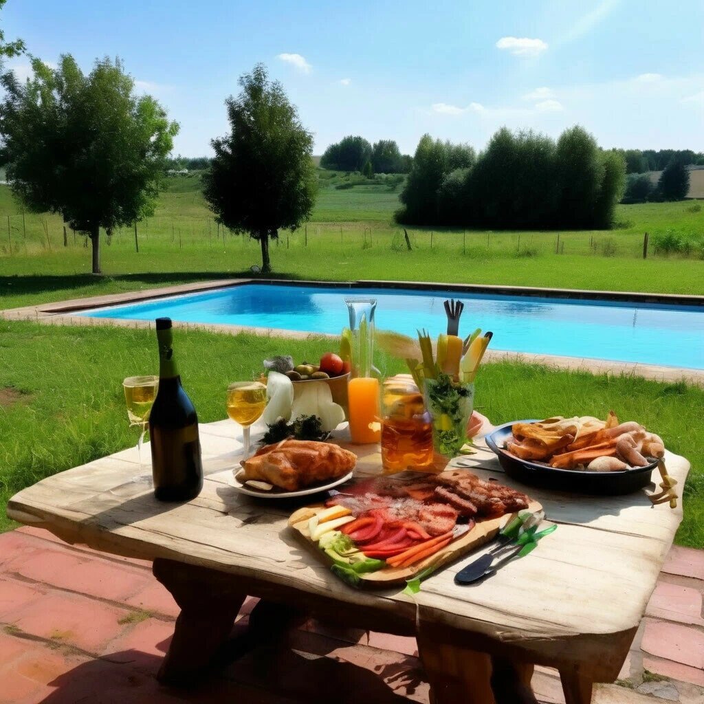Чистый бассейн, мангал, шашлыки,