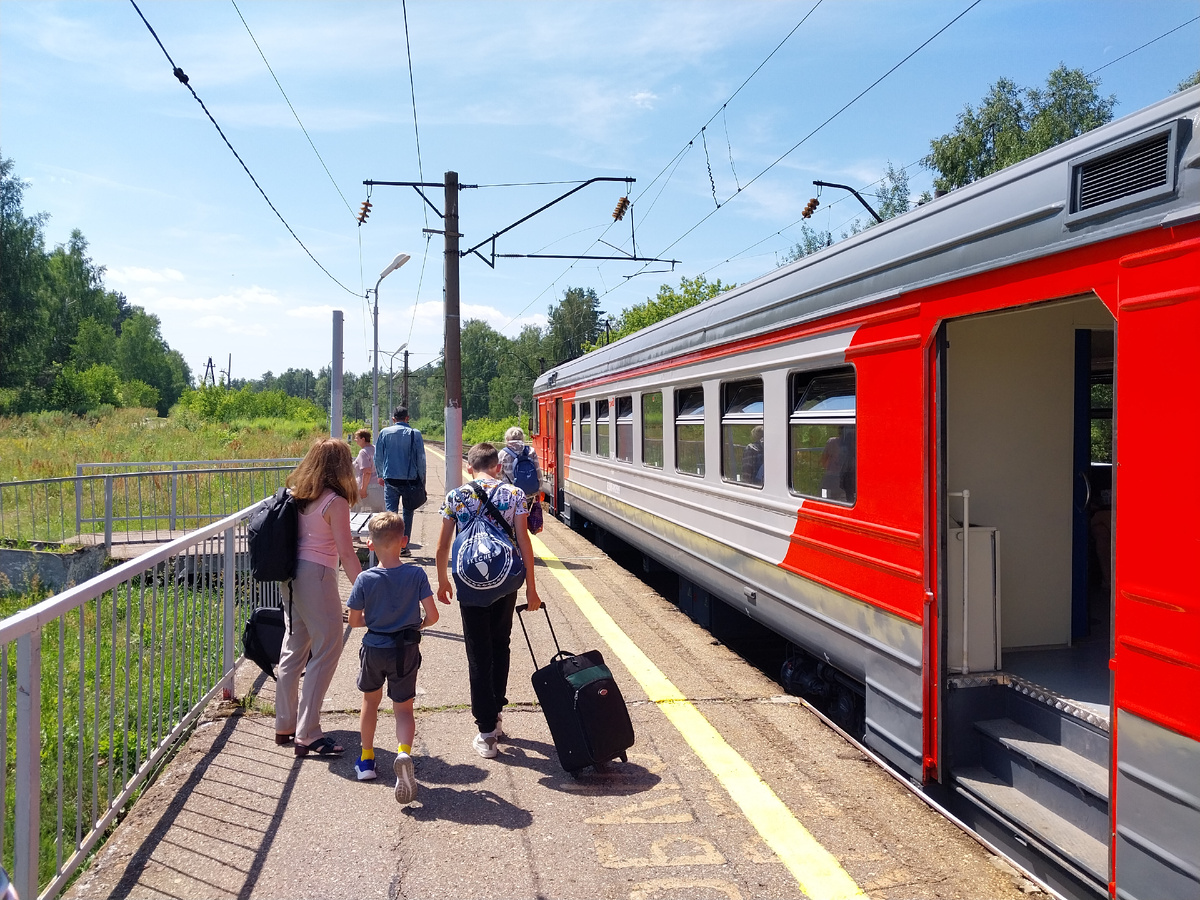 А вот электричка подъезжает к Волге: