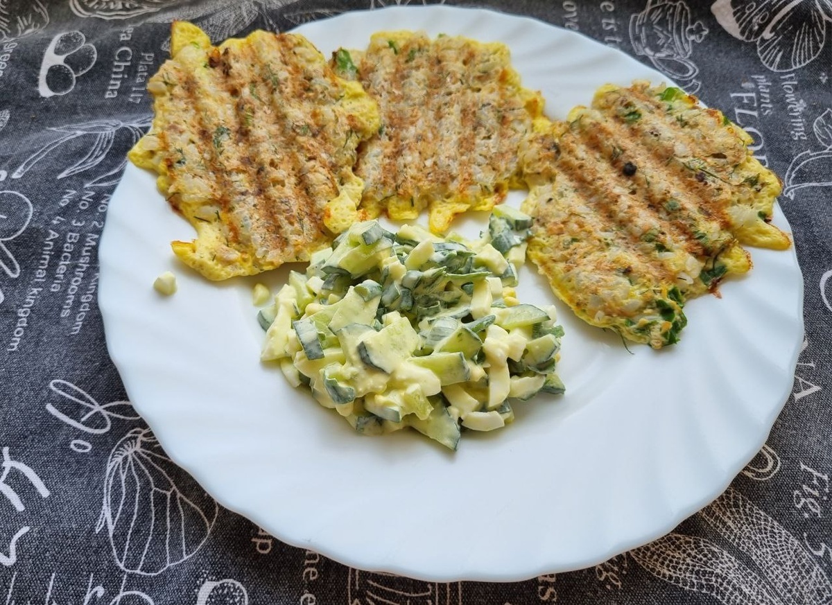 Оладушки из горбуши и салат из огурцов и зелени: замечательная идея бюджетного, простого и вкусного экспресс-завтрака/обеда от Оксаны