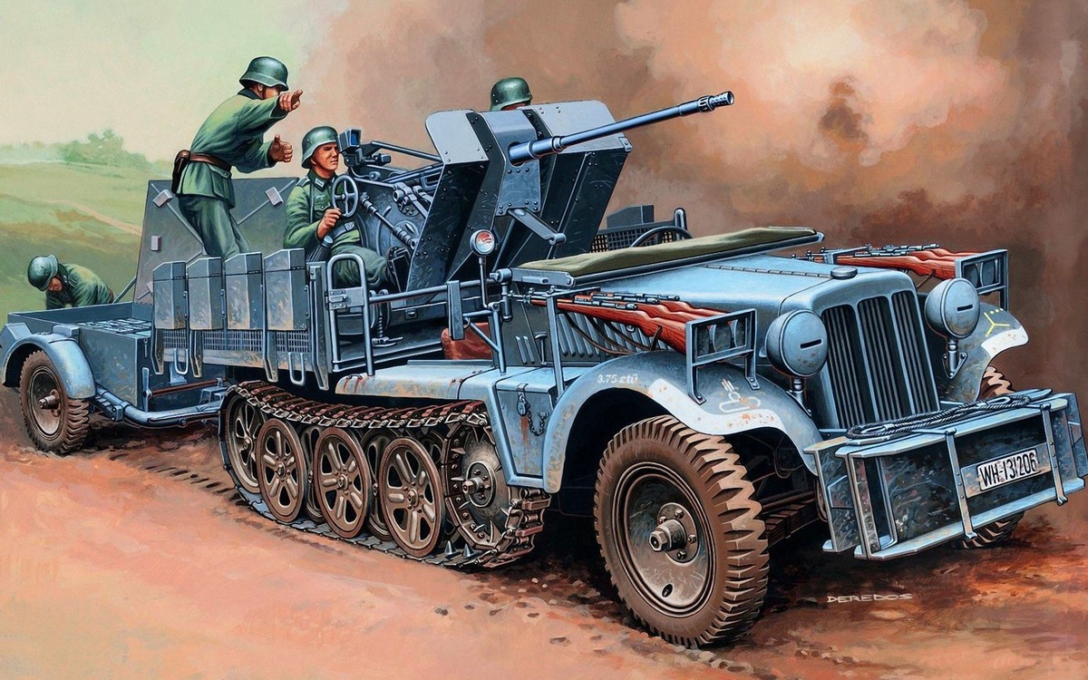 Разумеется идея использовать Sd.Kfz.10 в качестве не только тягача, но и платформы для какого-нибудь оружия появилась почти одновременно с испытаниями опытных образцов. И первое что поставили в кузов была 20 мм зенитная артустановка Flak 30