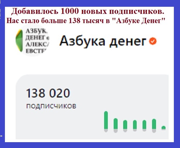 Дзен иногда бывает "добрым". Он щедро "налил" мне 1000 новых подписчиков. Не за один день, конечно же. Это произошло «размазано» за 1 месяц и 6 дней. То бишь за неполных 5 недель. Теперь на моем дзен-канале «Азбука Денег» 138 тысяч подписчиков. За 7 лет моего присутствия на этой контент-платформе. Даже не знаю, Как её сейчас правильно называть – эту онлайн-площадку? 1) Сначала она была Яндекс-Дзеном. Потом её отдали/обменяли VK-шникам (Mail ru). После чего объединили с VK-шным «Пульсом», путём его ликвидации. Что радует, ибо туда меня не пустили. Так «Пульсоведам» и надо – они пытались быть слишком «нишевыми», за что и поплатились. Вот что значит «неправильное позиционирование» на рынке – их попросту «сожрали» свои же. Внутрикорпоративный каннибализм? От всех этих перетрубаций платформу Дзен нещадно трясло и колбасило – в прямом и переносном смысле. Неоднократно менялись алгоритмы рекомендации контента Авторов, система монетизации (вознаграждения, начисляемого Авторам), руководство