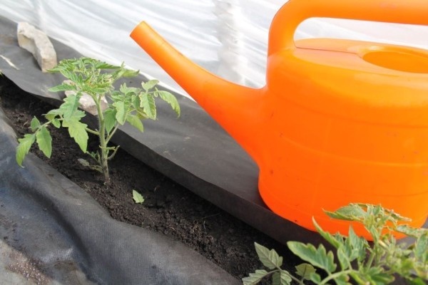 Помидоры не любят полива по листьям, особенно в период цветения: цветы и завязи могут начать осыпаться. Поэтому лить воду нужно исключительно в прикорневую зону. Исключение – сильная жара, в этом случае допустимо дождевание, но лишь в ранние утренние часы. Избыток влаги в период плодоношения, как и редкие и слишком обильные поливы, может спровоцировать растрескивание плодов. Если почва слишком сухая, поливы не проводились давно, норму воды для первого полива лучше снизить, в последующем восполнив недостаток.