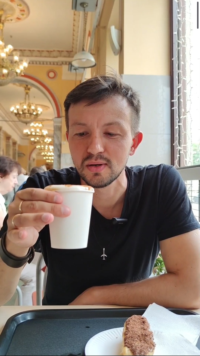 Кофе, яйцо и коньяк. Вот тема сегодняшнего рассказа.))) В самом центре Минска, сохранился знаменитый советский Универмаг. Атмосфера тут точь в точь как была лет 50 назад. Интерьеры 60-х годов, с огромными люстрами. Бесконечная очередь из интеллигентов, уже давно не интеллигентов, студентов, пенсионеров и конечно туристов. На витрине торты и пирожные, которых сегодня мало где можно найти. Всё из того далёкого советского детства. Даже продавщицы в соответствующих халатах и пилотках. В общем, полное погружение 🔥 Так вот в меню сего прекрасного заведения, есть легендарный кофе с яйцом и коньяком. Подходим к кассе и я забываю название этого кофе. Я: " Мне пожалуйста кофе который с коньяком и эклер с масляным кремом" Кассир: " Хорошо." После этой фразы, кассир уходит и просит девушку стажёра, всё сделать. Я на секунду отварачиваюсь и вижу как девушка стажёр, уже принимает заказ у следующей за мной дамы. Странно, ну ладно, подожду. Смотрю на даму, а она явно немного навеселе.))) Ч
