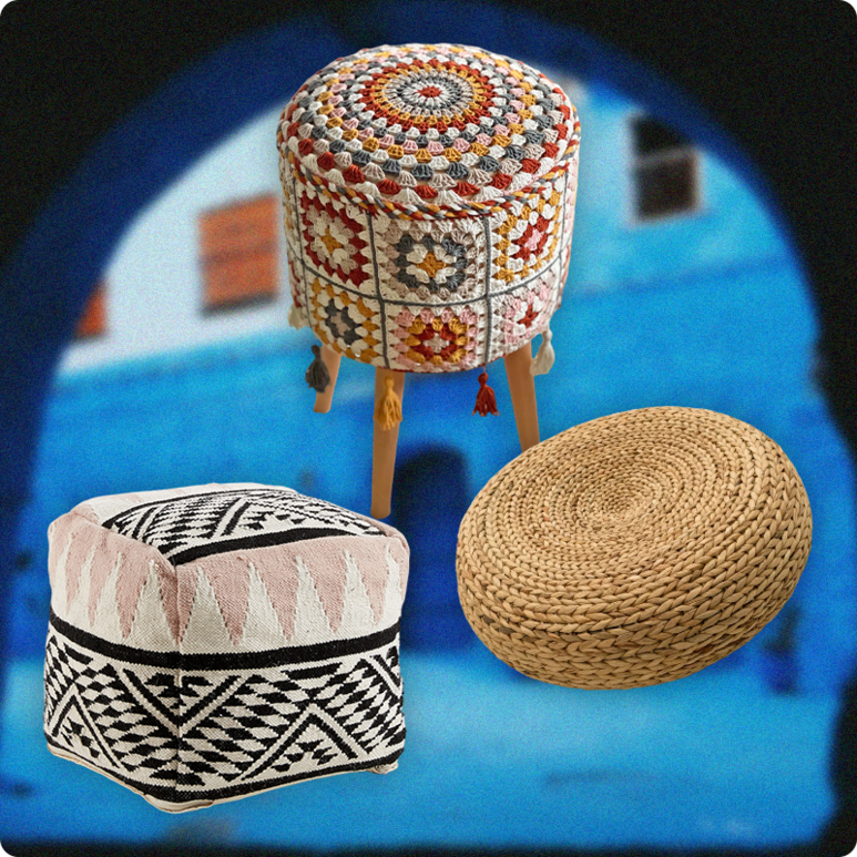 Если вы не знаете, с чего начать погружение в мир марокканского колорита, то присмотритесь к пуфикам. Они антуражные, красочные — так и манят присесть и отдохнуть за разговором с друзьями или чтением книги.