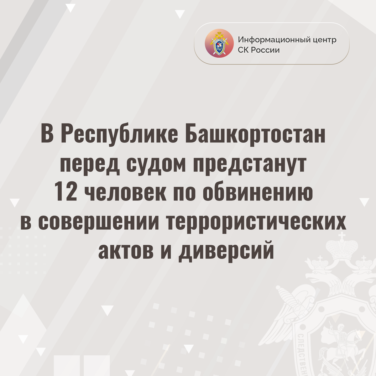 В Республике Башкортостан перед судом предстанут 12 человек по обвинению в совершении террористических актов и диверсий