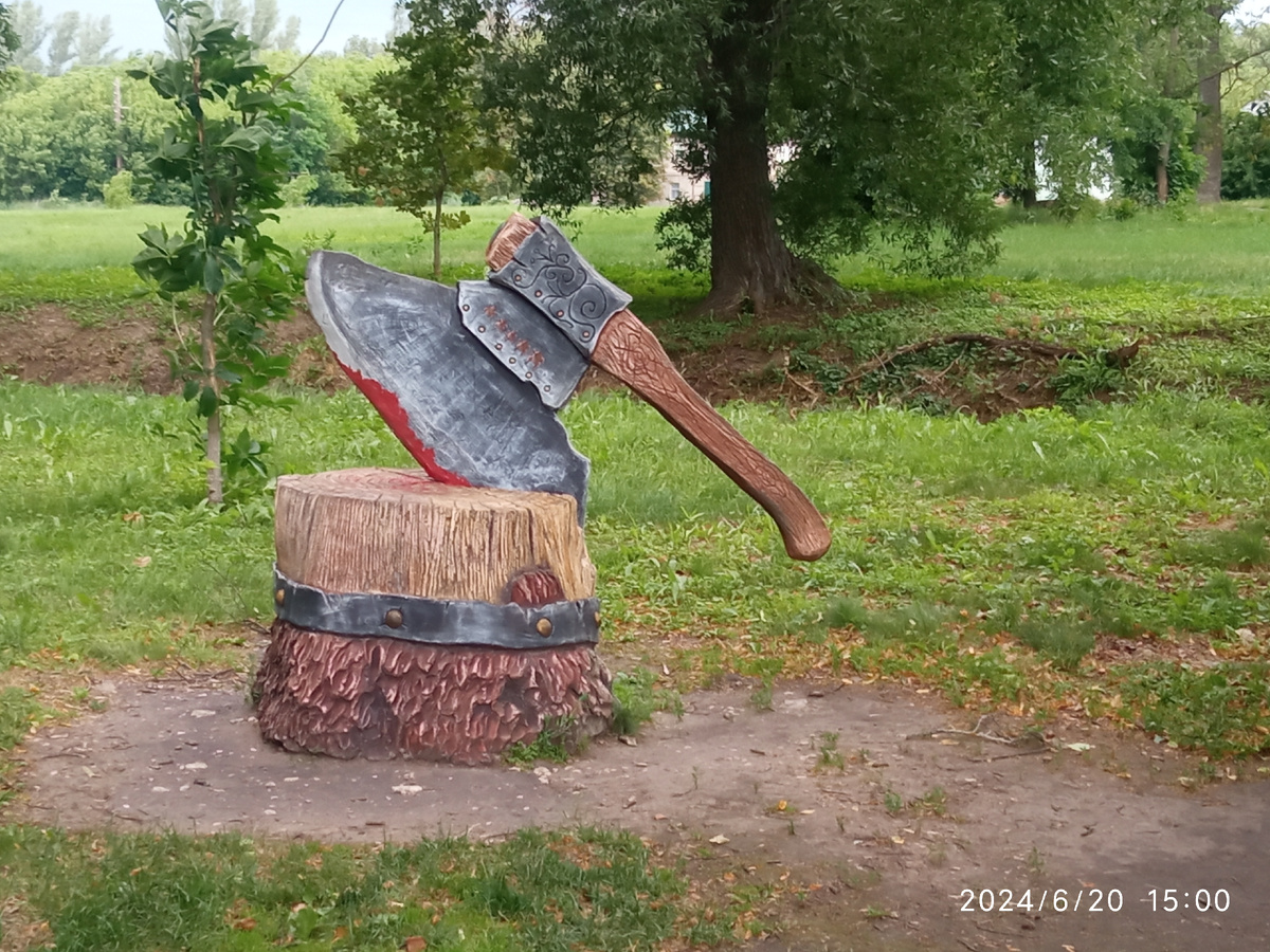 Ну тоже ниче. Красивый такой топор, художественно выделанный, да еще со следами крови. Очень здорово гармонируют с позорными столбами с колодками.
