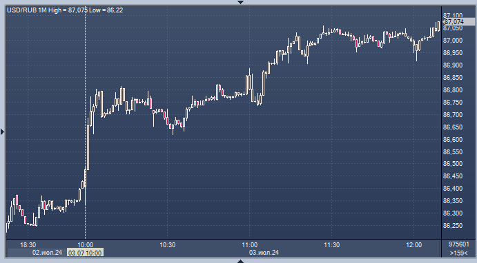 Рубль никак не отреагировал на это сообщение Курс доллара к рублю расчётный, фьючерс, вечный фьючерс и межбанк. Курс евро к рублю расчётный, фьючерс, вечный фьючерс и межбанк. Курс юаня к рублю биржевой, фьючерс, вечный фьючерс и межбанк. С 5 июля по 6 августа ведомство планирует направить на покупку иностранной валюты/золота в рамках бюджетного правила средства объемом 123,8 млрд рублей, то есть ежедневный объем операций составит эквивалент 5,4 млрд рублей. Об этом сообщило само министерство. Это почти в полтора раза больше, чем покупалось с 7 июня по 4 июля (3,7 млрд руб., в сумме 71,1 млрд руб.). Минфин прогнозирует дополнительные доходы федерального бюджета от продажи нефти и газа в июле в размере 145,3 млрд руб. Отклонение фактически полученных нефтегазовых доходов от ожидаемого месячного объема по итогам июня составило минус 21,5 млрд руб. Банк России выступает агентом Минфина и непосредственно проводит конверсионные операции на валютном рынке, которых с недавнего времени остался