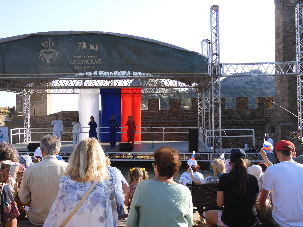 Наш отпуск в Крыму, выпал на 12 июня, в праздник День России. В этот день , в Судаке решили провести 2 концерта в древней Генуэзской крепости: один утром, второй вечером. Причём оба абсолютно бесплатно. Чем кстати многие воспользовались и прошли на территорию крепости бесплатно, полностью проигнорировав концерт. Расписывать подробно, что мне там очень не понравилось, сейчас не буду, напишу отдельную статью. А сейчас, те кто пропустил, предлагаю посмотреть 2 видео с выступления артистов. Надеюсь Вам понравиться. Видео 1 Видео 2 Всем добра!!!