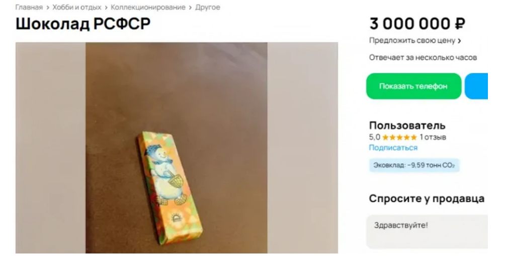 3 млн. р. Не много ли хотят за шоколадку времен СССР?