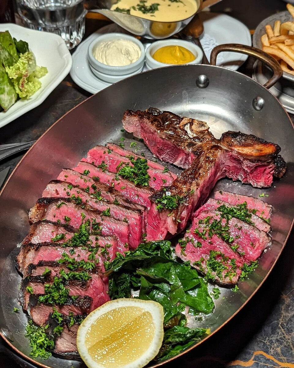 Стейк: танец огня и вкуса Стейк - это не просто кусок мяса, это целое произведение искусства, результат тонкой игры вкуса, текстуры и аромата. Правильно приготовленный стейк - это симфония вкусов, где каждая нота продумана и выполнена с мастерством. Чтобы создать этот шедевр, необходимо знать несколько ключевых правил. Выбор мяса: Сорт:Говядина - идеальный вариант для стейка. Используют мясо из специальных пород с марморированием, то есть с прожилками жира, которые делают мясо более сочным и нежным. Вырезка: Для стейков используют различные части туши, каждая из которых отличается своей структурой и вкусом. Рибай: Самая популярная вырезка, с большим количеством жира, что делает стейк нежным и сочным. Нью-Йорк стейк: Более тонкая вырезка из спинной части, отличается нежной текстурой и насыщенным вкусом. Филе миньон:Самый нежный и тонкий стейк, который готовит быстро и получается сочным и мягким. Ти-бон стейк:Сочетает в себе две вырезки: филе миньон и стриплойн, ч