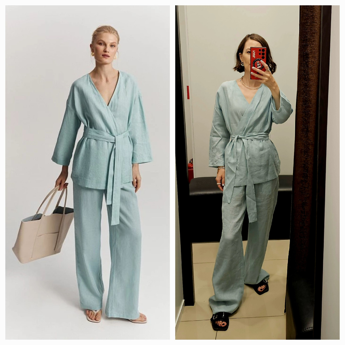 Вы просили примерять вещи в магазинах, а не просто показывать на вешалках. Это пробная статья с возвращением такого формата. Если наберет много просмотров и реакций от вас (палец вверх) - буду периодически делать примерки, если нет - оставлю менее затратный по времени вариант. Начать решила с Элис - бренд многим нравится, да и интересных летних вещей там довольно много. Однако, есть и не очень удачные. Показываю и те, и другие на себе и как они представлены на сайте бренда. На удачные дам артикулы. Бирюзовый костюм Он - огонь: классный цвет, который многим подходит, верх в виде кимоно, посадка отличная. Два момента: на брюках меня чуть смущает псевдогульфик, (но это моя личная заморочка), рукав хотелось бы совсем немного длиннее, но опять же на чуть меньший рост или у кого немного короче руки - будет ок. Артикулы: кимоно BL1404, брюки TR02265 Оранжевый костюм А вот этот этот не огонь: я долго пыталась как-то красиво завязать верх - но он перекашивается, да весь вислый, а брюки странн
