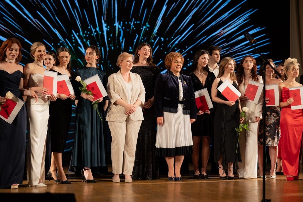 Несмотря на испепеляющую жару, 28 июня памятник Михаилу Калинину в Пролетарском районе Твери утеплили белым халатом, а это значит, что студенты Тверского медицинского университета чтят свои выпускные традиции. Официальная часть выпускного в Тверском ГМУ началась утром того же дня, когда в учебном корпусе на улице Ивана Седых, 1, отличникам вручали красные дипломы. Мероприятие проходило в торжественной обстановке, было немало почетных гостей, ведь университету есть что праздновать. «Дорогие выпускники, уважаемые преподаватели, сегодня очень важный день для нашего региона, – сказала со сцены актового зала министр здравоохранения Тверской области Ксения Абрамова. – Я бы хотела пожелать, чтобы тот фундамент знаний, навыков, человечности, который был заложен в вас в стенах Тверского государственного медицинского университета, стал опорой для строительства вашего будущего профессионального дома. Желаю, чтобы все, что вы задумали, было реализовано. Поверьте, все в ваших руках». В 2024 году ун