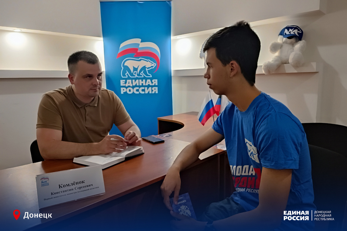 Сегодня прием граждан в региональной общественной приемной Единой России провел первый заместитель министра молодежной политики ДНР Константин Комлёнок. С вопросами к нему обратились волонтер Карен и жительница ДНР Марина. Карен и активисты его организации столкнулись с проблемой поиска помещения для систематического проведения мероприятий. Марину интересовали выборы в Молодежный парламент, которые пройдут в следующем году. Константин Комлёнок внимательно выслушал обратившихся и дал подробные разъяснения. «Действительно, найти пространство для проведения мероприятий нелегко, учитывая большое количество различных организаций в Республике, не только молодёжных. Однако проблему решить возможно. Обсудим с региональным руководителем его организации, как можно решить возникшую ситуацию, проработаем все вопросы с администрацией муниципального округа. В любом случае, решим ситуацию в пользу наших волонтеров. Что же касается Молодежного парламента: выборы пройдут в следующем году, однако пока т