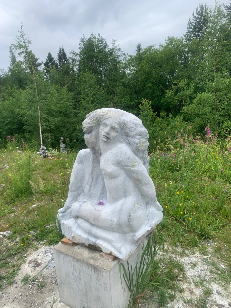 Лето в парке Рускеала , конечно, ярче, насыщеннее, интереснее, чем зима. Хотя и полгода назад было что посмотреть. Изумрудная зелень, пронзительная синева воды в карьере и всевозможные черно-белые оттенки мраморных стен создают неповторимый запоминающийся вид. Кроме того, многочисленные посетители везде , где только можно, выкладывают пирамидки и пирамиды желаний - целые мини поля сейдов. Высеченные в глыбах мрамора тела, лица, фигуры завораживают, а некоторые камни при особом умении их трогать, даже издают звуки… Море красоты и впечатлений. Спасибо , Карелия.