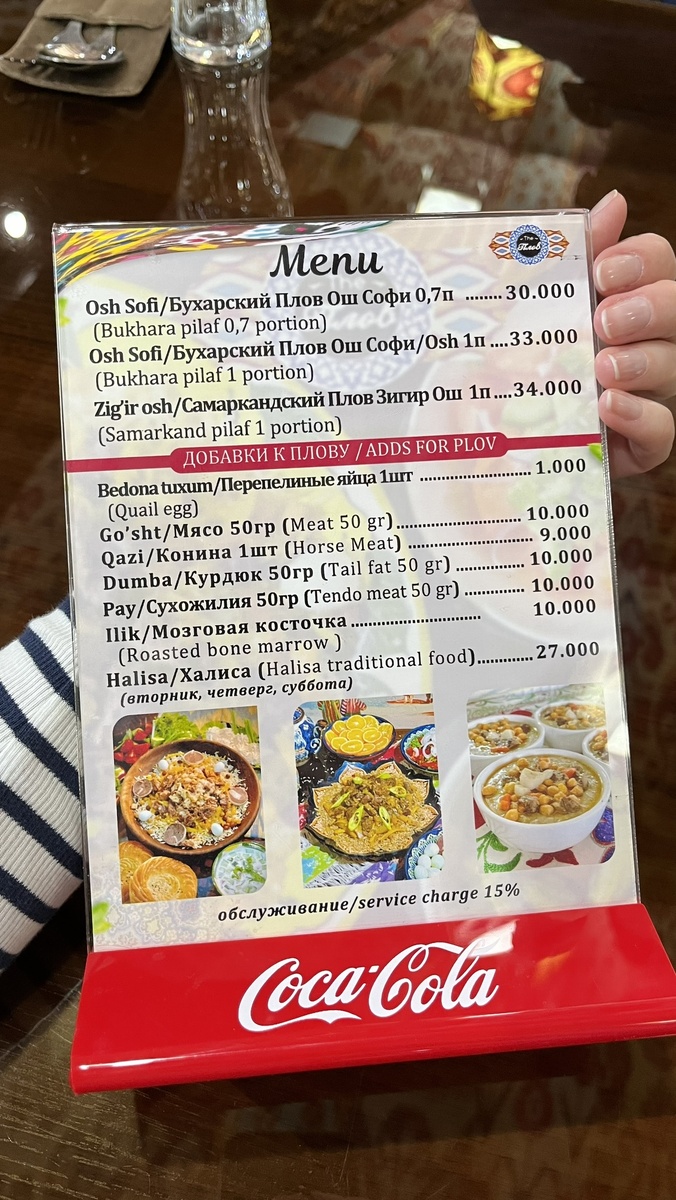 Центр плова в Бухаре "The Plov" находится по адресу проспект Абу Али ибн Сины, 8/1. Он работает ежедневно с 11 до 15 часов, так как плов традиционно подают на обед. В меню есть два вида плова: бухарский и самаркандский, оба с говядиной. Стоимость порции составляет 33,000-34,000 сум (примерно 253-338 рублей), а за обслуживание взимается 15%. Заведение привлекает своим красивым интерьером и быстрым обслуживанием. К плову можно заказать добавки, такие как перепелиные яйца, сухожилия, курдюк и мозговую косточку, а также различные салаты и закуски. Мы попробовали оба вида плова. Порция 0,7 оказалась очень большой. Нам плов понравился: он был не жирным, с большим количеством мяса. По моему мнению, плов здесь даже лучше, чем в Центре плова в Ташкенте. Несмотря на популярность среди туристов, здесь много местных жителей. До Центра плова удобнее всего добираться на такси, так как он находится за пределами старого города, но мы дошли пешком от Ляби Хауза примерно за полчаса. На моей интерактивн