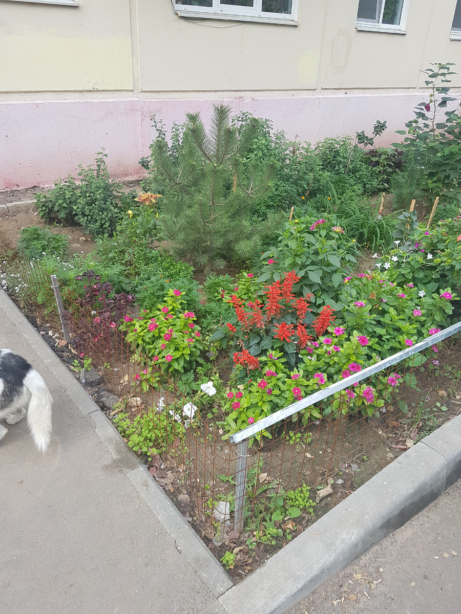 Фиолетовая Сальвия вылезла вообще за забором, и я не удалил ее как и все сорняки, только по случайности, дав ей отрастить немного листья и опознав их я ее оставил, вот теперь думаю все-таки передвинуть ее за забор, чтобы дать ей шанс на выживание раз она так хочет, потому что с внешней стороны она точно не выживет.