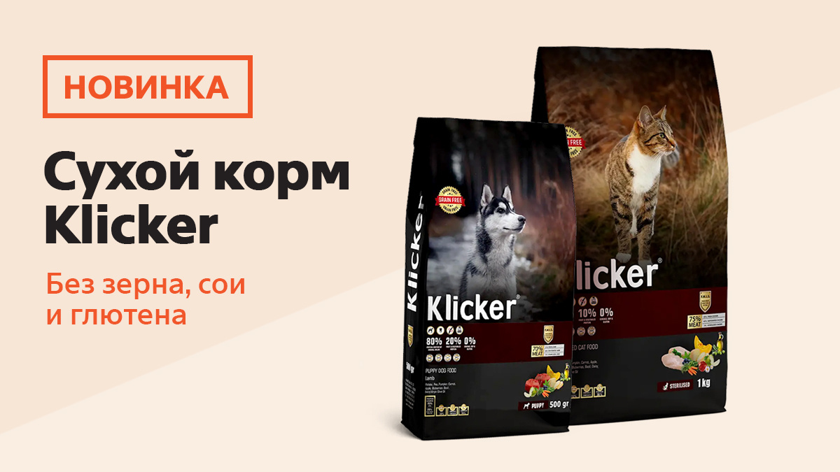 Klicker — новинка! Беззерновой корм для кошек и собак