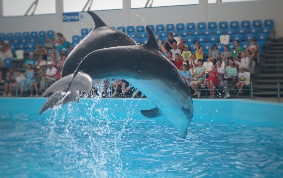 Дельфины и морской лев в дельфинарии станицы Голубицкая на Азовском море - источник ярких запоминающихся эмоций для детей и родителей. Приятная женщина-кассир у входа в дельфинарий посоветовала брать билеты поближе к выходу, так как малыши редко выдерживают более 15 минут представления. Мы послушались, но эта "мера безопасности" оказалась излишней. Маруся (2 года 10 месяцев) все 50 минут спокойно просидела в первом ряду, завороженно разглядывая морских артистов и даже не пытаясь встать с места. Мы с мужем, кроме ультразвуковых волн радости и позитива, излучаемых дельфинами, получили, а точнее, дополнили, знания о некоторых интересных особенностях обитателей дельфинария. 🔷️ Морские львы после рождения потомства, щедро кормят своих детенышей молоком в течение недели, а затем, оставляя их, уходят на три недели в открытое море для поиска пищи. Вернувшись, среди сотен похожих друг на друга малышей, они находят именно своих детей и кормят только их. 🔷️ Дельфины, как и люди, дышат легкими,