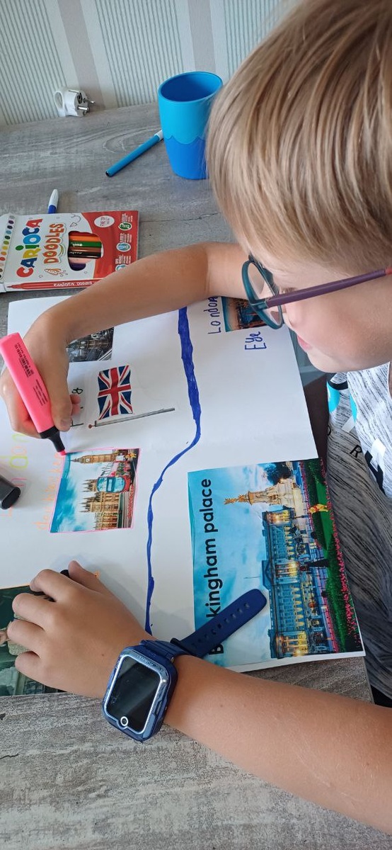 1️. Берём большой лист бумаги А 3 лучше, не меньше, пишем сверху London и рисуем Темзу так как она протекает в Лондоне! На карте посмотрите. Правильное размещение реки нужно для того,чтобы расположить достопримечательности в городе.