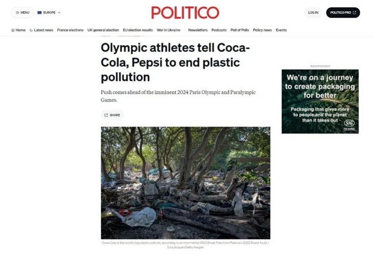 Более 100 всемирно известных спортсменов призвали производителей напитков Coca-Cola и Pepsi прекратить продажу одноразовых пластиковых бутылок, покончить с загрязнением окружающей среды пластиком и пропагандировать тару многоразового использования при спонсировании спортивных мероприятий. Призыв прозвучал в преддверии Олимпийских и Паралимпийских игр 2024 года в Париже, которые начнутся 26 июля и спонсором которых является Coca-Cola, передает Politico. В статье отмечается, что 102 действующих и бывших спортсмена, из которых 22 участвуют в Олимпиаде Париже, направили 10 июля генеральным директорам компании Coca-Cola, ее европейского филиала Coca-Cola Europacific Partners и американского конкурента PepsiCo письмо, в котором призывают компании положить конец загрязнению пластиком «в духе Олимпийских игр и спорта». Среди подписавших письмо – французская виндсерфер Шарлин Пикон, серебряный призер Олимпийских игр по конному спорту ирландка Сара Эннис, американский пловец и двукратный обладат