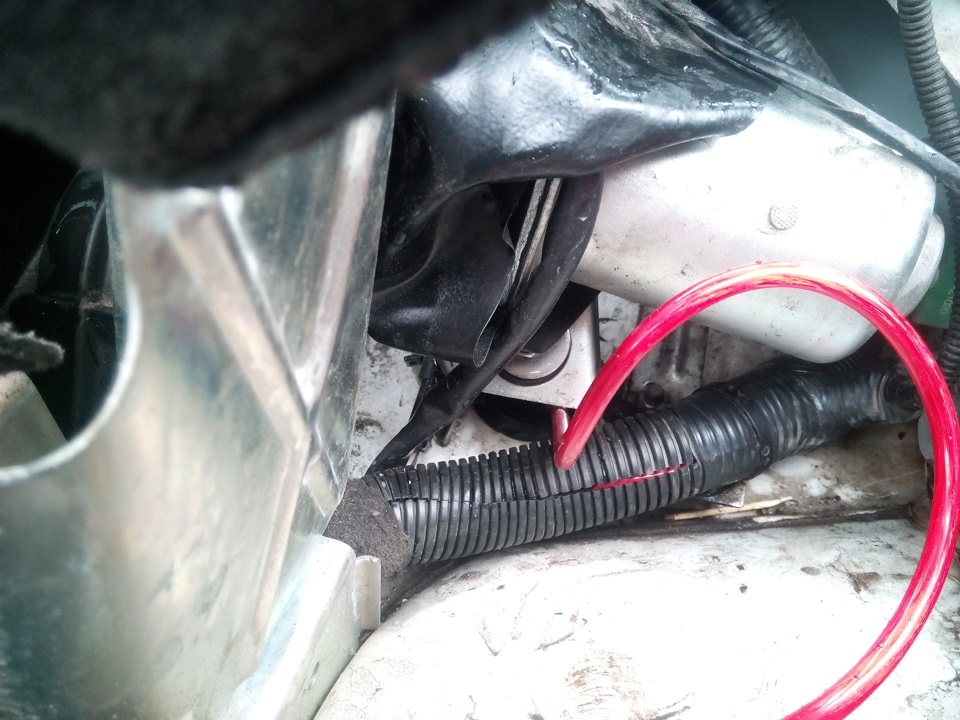 4. В магазине была 30% скидка на все оборудование. Итак… купил я комплект Alpine SBG-12KIT в который входит сабвуфер Alpine SBG-12BR (пиковая мощность 800Вт), усилитель Alpine MRP-M350 (пиковая мощность 700Вт) и комплект проводов. Процесс начался с протяжки кабеля в салон, для этого я снял расширительный бачок с обшивкой и продел через резинку для гидрокорректора. (кстати… если кому то в дальнейшем пригодится: резинку удобнее вытаскивать и вставлять в исходное положение