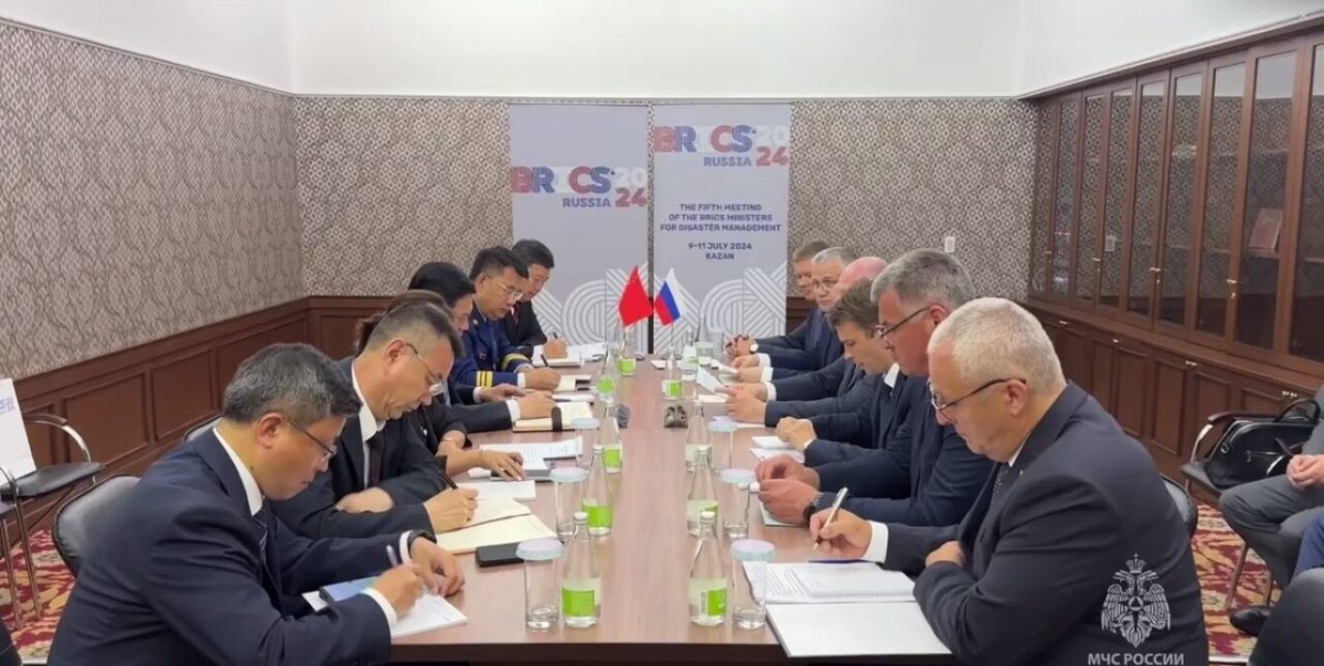 Встречу с руководителями чрезвычайных ведомств Китая и Эмиратов провёл глава МЧС России Александр Куренков. Во время встречи с Министром по реагированию на ЧС Китая Ван Сянси обсудили векторы партнёрства в области регулярного обмена данными космического мониторинга.