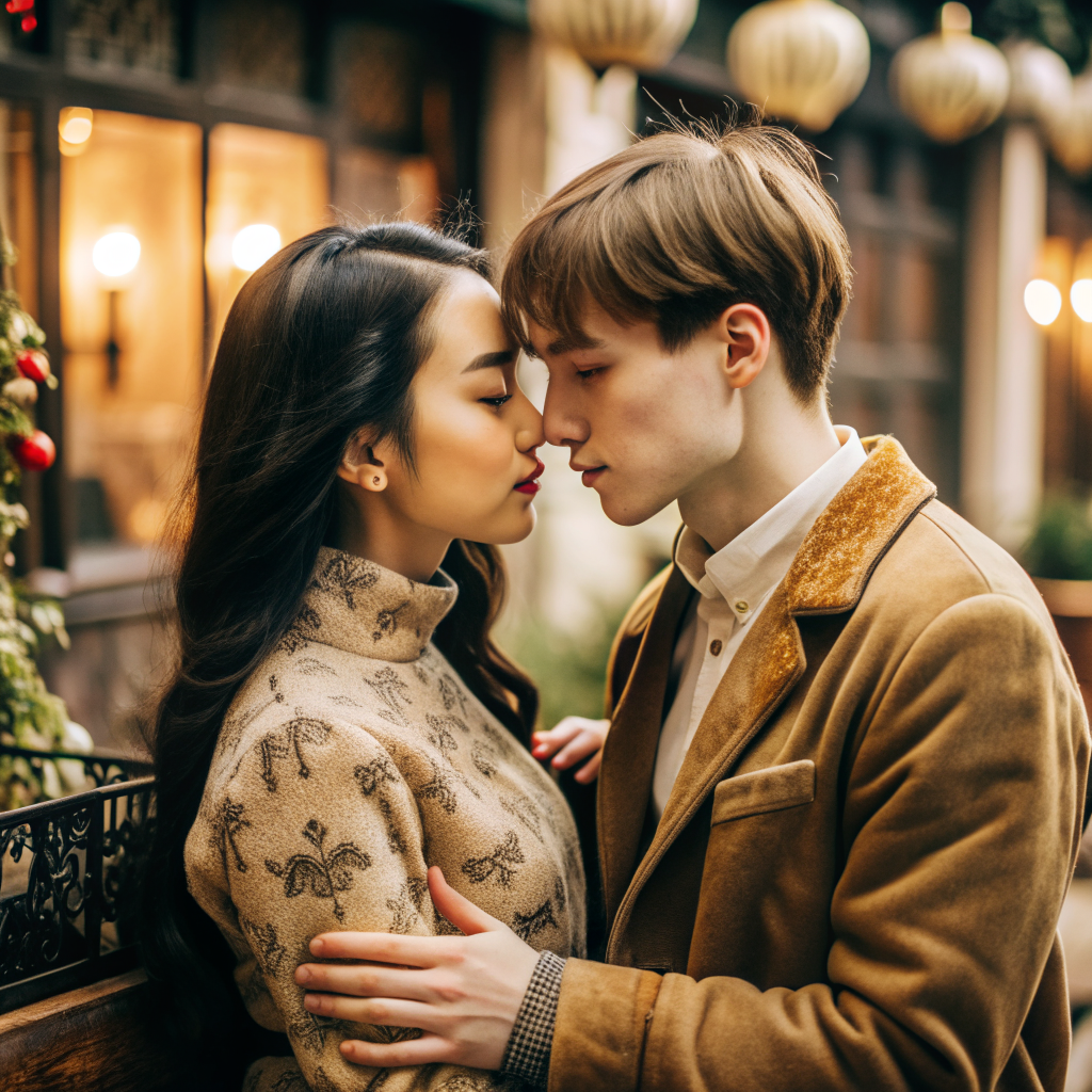 В шумной и яркой Шанхае, где современные небоскребы соперничают с древними храмами, встретились два человека из разных миров. Линь — утонченная китайская девушка с глубокими черными глазами и мягким голосом, и Алексей — русский парень, приехавший в Китай по работе. Линь работала в небольшой кофейне на набережной Хуанпу. Каждый день она встречала туристов и местных жителей, готовя ароматный кофе и подавая свежие выпечки. Однажды, в особенно жаркий день, в кофейню зашел высокий парень с русскими чертами лица. Он пытался заказать кофе, но его знание китайского было ограничено. Линь, заметив его замешательство, улыбнулась и сказала на английском: "Могу я вам помочь?" Алексей был приятно удивлен, услышав знакомый язык. Он заказал капучино, и они начали разговор. Линь рассказала ему о своих любимых местах в Шанхае, а Алексей поделился историями о Москве. Их беседа была легкой и непринужденной, словно они знали друг друга всю жизнь. На следующей неделе Алексей пригласил Линь на прогулку по Бу