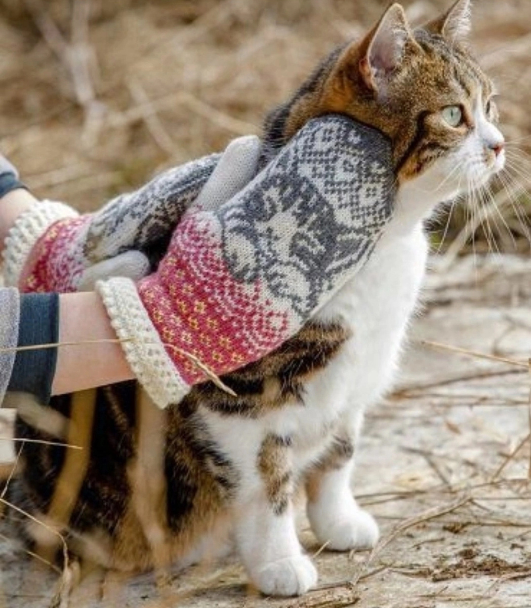 Вязаные варежки «Lullaby» Очаровательные вязаные варежки украшены рисунками котят. Размеры: Окружность ладони – 19-23 см, Окружность ладони варежки – 19.5 см, Длина – 25 см. Необходимые материалы: Пряжа Filcolana Arwetta Classic (80% шерсть, 20% нейлон; 210 м / 50 грамм в мотке) – по 1 мотку белого цвета (нить А), розового цвета (нить В), цвета ванили (нить С) и серого цвета (нить D). Необходимые инструменты: Наборы обоюдоострых спиц или круговые спицы № 2 и № 2.5, маркеры петель. Плотность вязания: 33 петли и 36 рядов = 10 см рисунка вязания, выполненного спицами № 2.5. Левая варежка: Спицами № 2 и нитью А набрать 60 петель. Поместить маркер и соединить петли в круговой ряд. Оставить длинный конец нити от набора петель для выполнения шва в дальнейшем. Связать 12 круговых рядов лицевыми петлями. Связать 1-й ряд рисунка А, повторяя 30 раз раппорт из 2-х петель. Связать остальные ряды 2-13 рисунка А нитью А. Отрезать нить А и присоединить нить В. Связать 2 круговых ряд