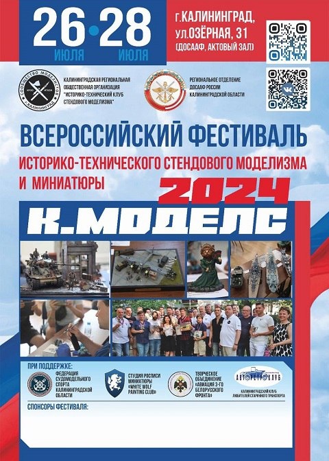 C 26 по 28 июля 2024 года в Калининграде пройдёт Фестиваль историко-технического стендового моделизма ДОСААФ России «К.Моделс-2024». Его цель – объединение любителей истории, военно-исторической реконструкции и помощь начинающим моделистам. Масштабное мероприятие Региональное отделение ДОСААФ России Калининградской области проводит совместно с КРОО «Историко-технический клуб стендового моделизма». Партнёрами выступают Федерация судомодельного спорта Калининградской области, студия росписи миниатюры White Wolf Painting Club, творческое объединение «Авиация 3-го Белорусского фронта» и Калининградский клуб любителей старинного транспорта АвтоРетроКлуб.