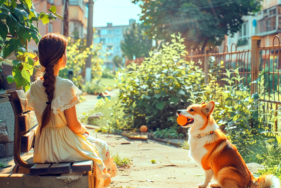 Через минуту корги уже нетерпеливо переминался с лапы на лапу, стоя перед парнем, в пасти он держал яркий оранжевый мячик. Сперва молодой человек не обращал внимания на перетаптывающегося пса. Тогда тот положил мячик к ногам парня и требовательно гавкнул. Парень вынырнул из своей книги, слово из глубокого сна, и недоуменно уставился на собаку. Корги лапой подтолкнул мячик к его ноге и неистово замотал пушистым хвостом. Парень понял и улыбнулся.