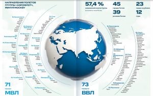 «Аэрофлот» опубликовал ESG-отчёт, в котором, помимо прочего, говорится об увеличении доли рейсов в обход Москвы по итогам 2023 года до 57,4%. Это показатель по всей группе «Аэрофлот», включая «Россию» и «Победу». При этом процент занятости пассажирских кресел составил 87,5% (+3,9 п.п. год-к-году). Всего за пределами московского авиаузла группа выполняла рейсы по 144 направлениям, из них 71 международных и 73 внутренних. Международных рейсов больше всего из Санкт-Петербурга и Сочи (по 11 направлений, почти все выполняются авиакомпанией «Россия»), внутренних – из Санкт-Петербурга (38) и Сочи (15), также 12 направлений есть из недавно запущенного хаба в Красноярске. Суммарно же региональная сеть группы охватывает 45 российских городов в 39 регионах и 23 зарубежных города в 12 странах мира, для сравнения, с учётом Москвы их не намного больше: 61 город России и 18 зарубежных стран. «Аэрофлот» летал в 2023 году по 79 внутренним маршрутам, охватывающим 50 городов, и перевёз на ВВЛ 18,1 млн. п
