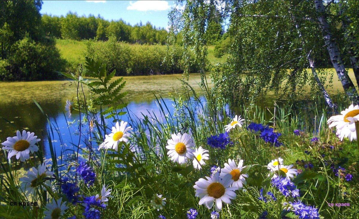 А июль вальяжно развалился, водой облился, водицу попивает, траву собирает, солнцем смеётся, и в нас улыбнётся.