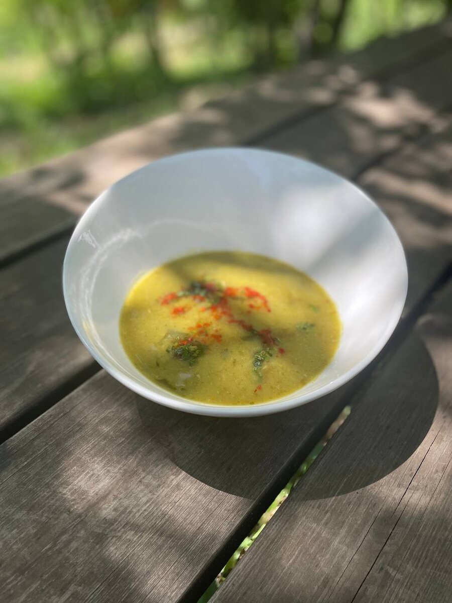 ✅ Разлейте суп по тарелкам и украсьте мелко нарезанной кинзой и паприкой.