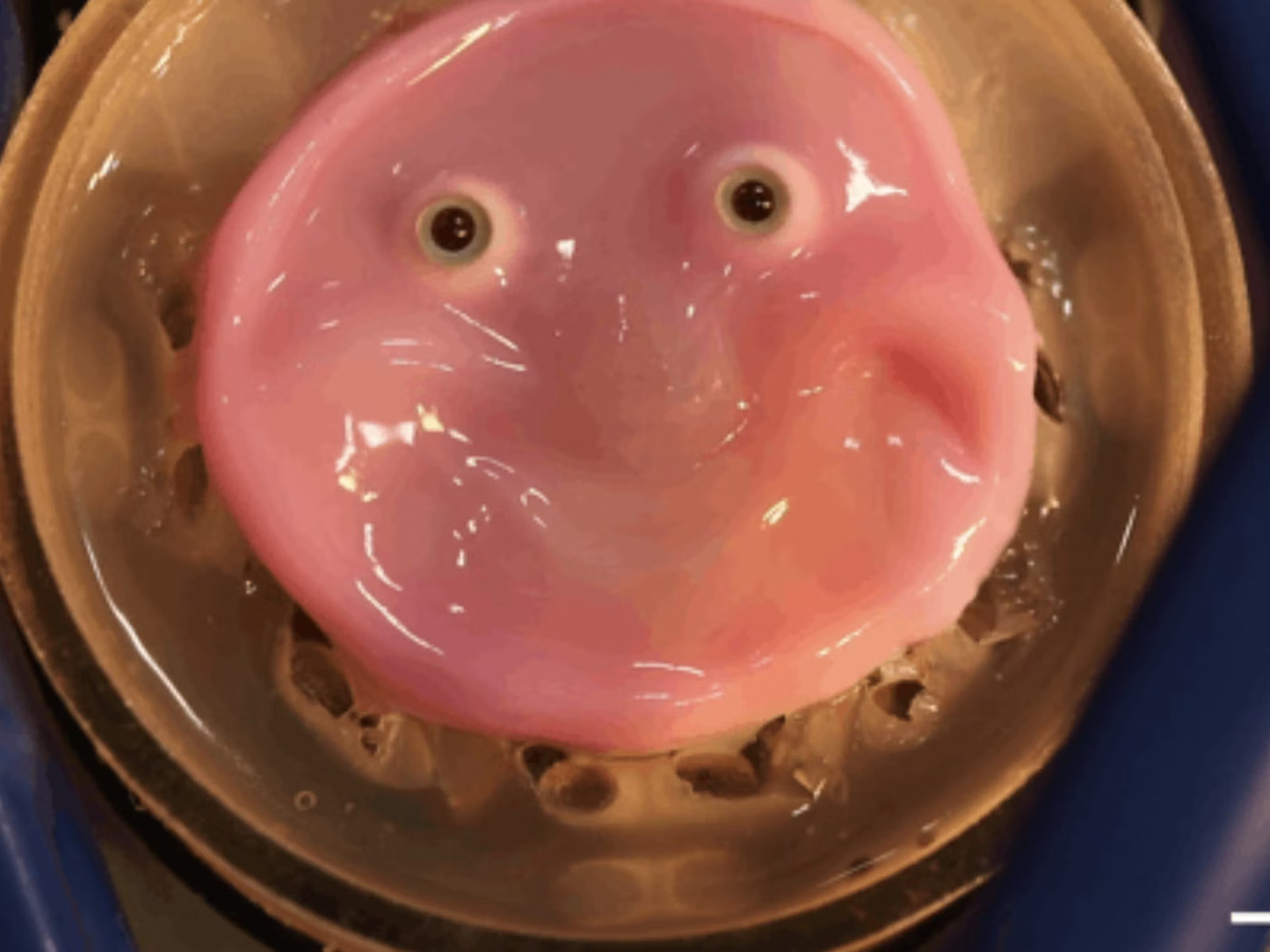 Чтобы материал держался на месте, инженеры использовали коллагеновый гель и сделали на лице робота проколы: