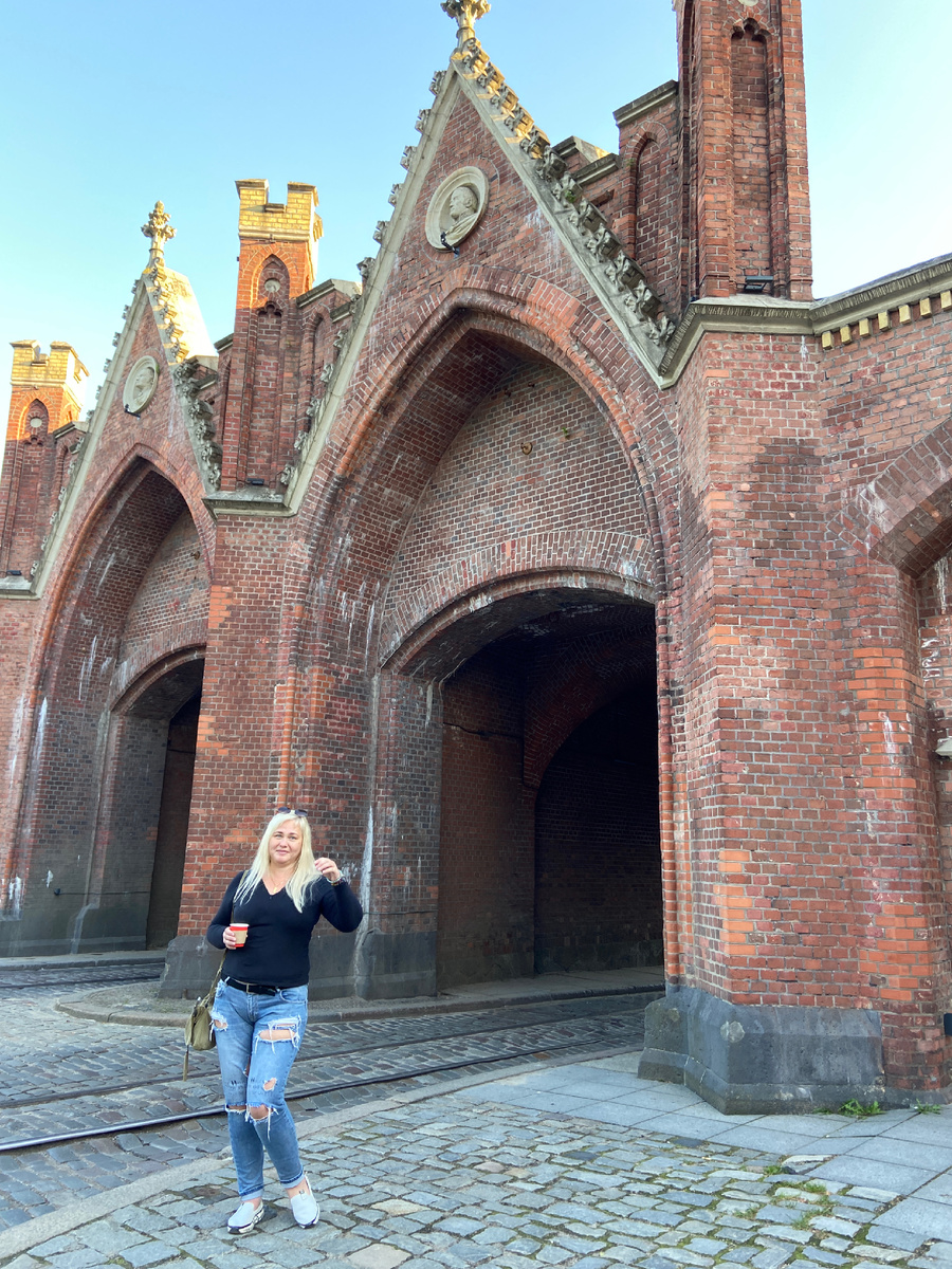 Итак, моя многолетняя мечта осуществилась. Я в самом западном Российском регионе, в янтарном крае, где суровое море и тёплые камушки, где улыбчивые красивые люди и невероятная архитектура. Моря пока не видела, но залив, где разгружаются грузовые корабли, порт, вечером красиво смотрится. У знаменитых Брандербургских ворот сфотографировалась. Там, в здании ворот, располагается музей марципана. Интересный и необычный. Тоже расскажу о нем попозже. Город потрясающий. Много зелени, много молодёжи. И все прям красивые какие-то. А мы полдня погуляли по центру: посмотрели на могилу Канта, зашли в синагогу. Впечатлений море. Конечно, обо всем расскажу подробнее чуть позднее. Решили собрать коллекцию хомлинов. Одного нашли уже. Это дедушка Карл, он на перилах моста перед Кафедральным собором сидит. Скульптура, изображающая зубров, которую остроумные калининградцы называют «прокурор и адвокат», Старые немецкие дома, маяк, река Преголя. Ах, как же хорошо!! А впереди еще столько интересного!