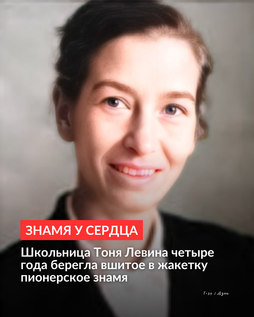 Да, это она, Тоня, рискуя жизнью, четыре года берегла вшитое в жакетку пионерское знамя первой школы им. М. В. Ломоносова в Орле. Теперь красное полотнище стало самой дорогой реликвией школы.